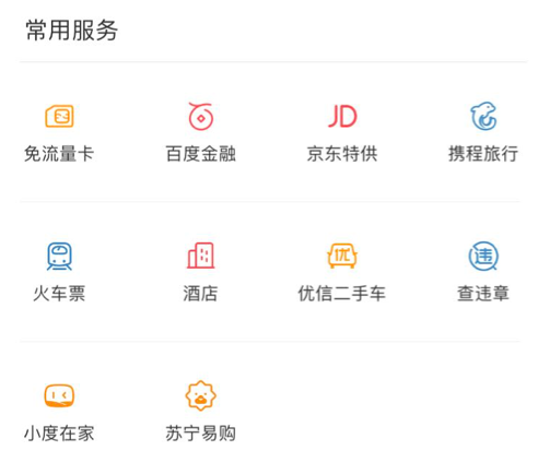 雷鋒網觀察到,百度智能(néng)小程序一個入口位于手機百度 APP 内,打開“我的”——“常用服務”内,目前處于服務狀态的小程序包括免流量卡、百度金融、京東特供、攜程旅行、火車票、酒店、優信二手車,以及個别遊戲小程序等。